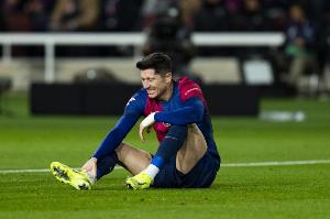 体育资讯10月14日讯 据记者Javi Miguel报道,莱万至少因伤缺席4周。